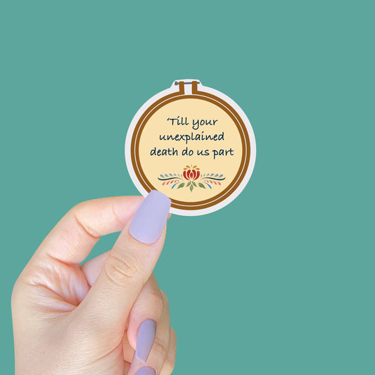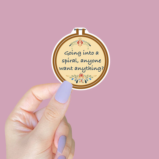 Cross Stitch Going into a Spiral, Anyone Want Anything Sticker