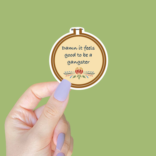 Cross Stitch Damn it Feels Good to Be a Gangster Sticker